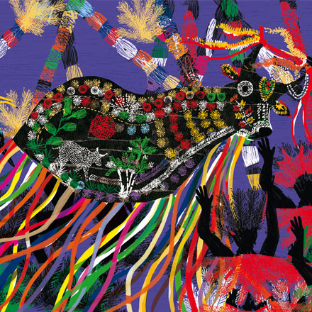 (2007)Existem muitas versões e nomes diferentes para o bumba-meu-boi. Na versão que Stela Barbieri e Fernando Vilela recontam para o público infantil, inspirada na versão maranhense do auto, o boi tem o “courinho todo preto, salpicado de colorido”, e encanta a todos na festa de São João. Inclusive a Mãe Catirina, que estava grávida e com desejo de comer justamente língua de boi. A história de como ela faz para matar esse desejo e de como esse boi, para alegria de todos, volta a urrar é contada e reinterpretada desde o século xviii no Brasil. Em cada região do país a música, os personagens e até mesmo o próprio boi ganham novas características, o que permite que esse folguedo seja até hoje, e em todos os sentidos, tão popular.